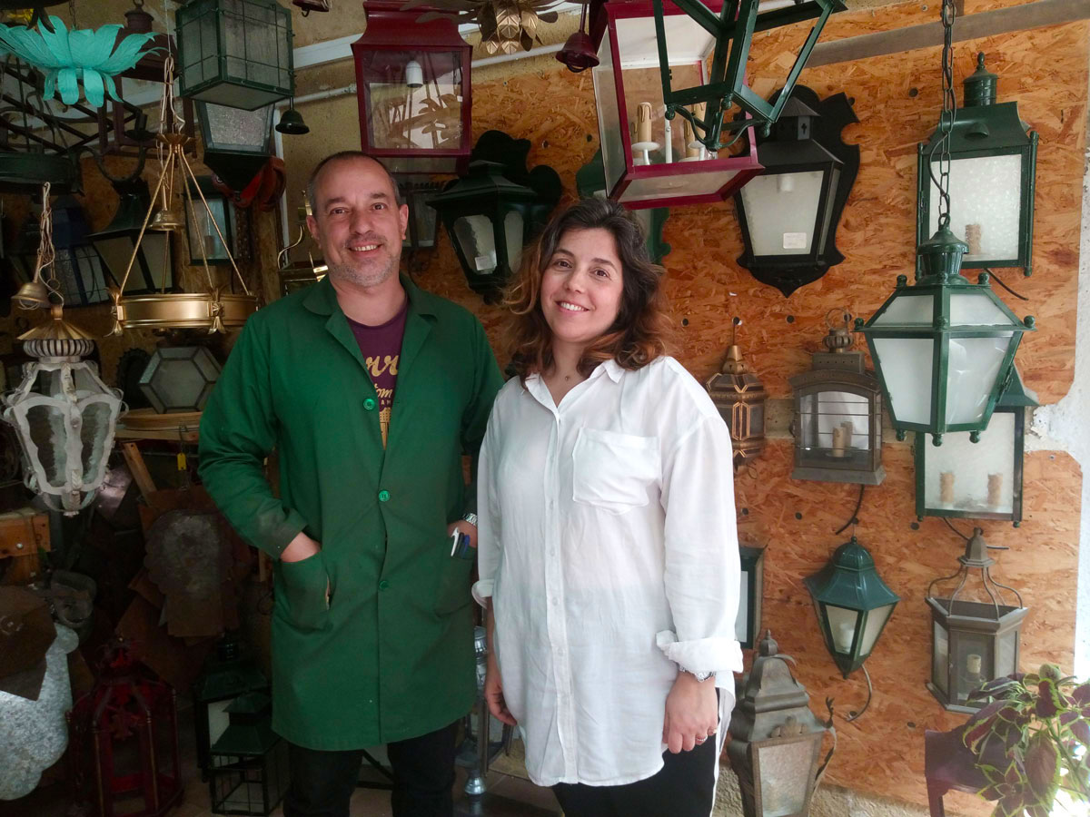 Margarida: O Rui veio de uma forma muito bonita e natural. Eu casei com o Rui muito jovem, com 20 anos. Entretanto o Rui começou a trabalhar no teatro, teves várias convites e acaba no Casino Estoril. Esteve lá durante 12 anos, na área do espetáculo, e a seguir há um despedimento coletivo (que ainda continua em tribunal). E o Rui é um homem muito ativo, e houve um convite para ir para a oficina. Começou a aprender. E a produzir lanternas. Entretanto o meu pai adoece, eu entro na Maciel e começamos a fazer equipa. Eu na parte da frente, na venda e ele na parte das oficinais (em que o Rui é fantástico). Antes disso, eu trabalhava na Coca-cola, em marketing.