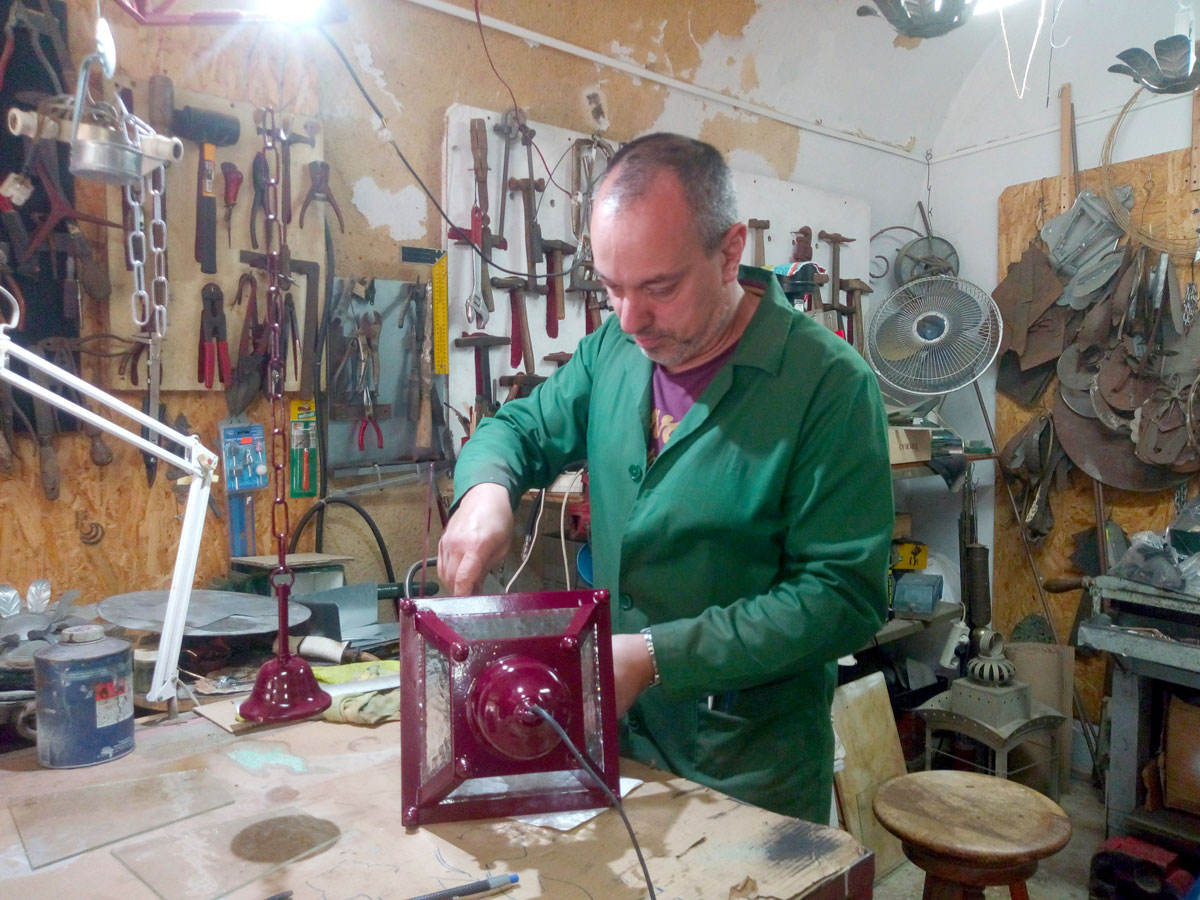 Nós somos latoeiros e fazemos lanternas, mas temos o latoeiro/funileiro, latoeiro/caldeireiro. Porque eram pessoas que aprendiam a arte de transformar os metais mais leves, a folha de flandres, chapa zincada, chapa galvanizada, zinco, cobre e o latão.